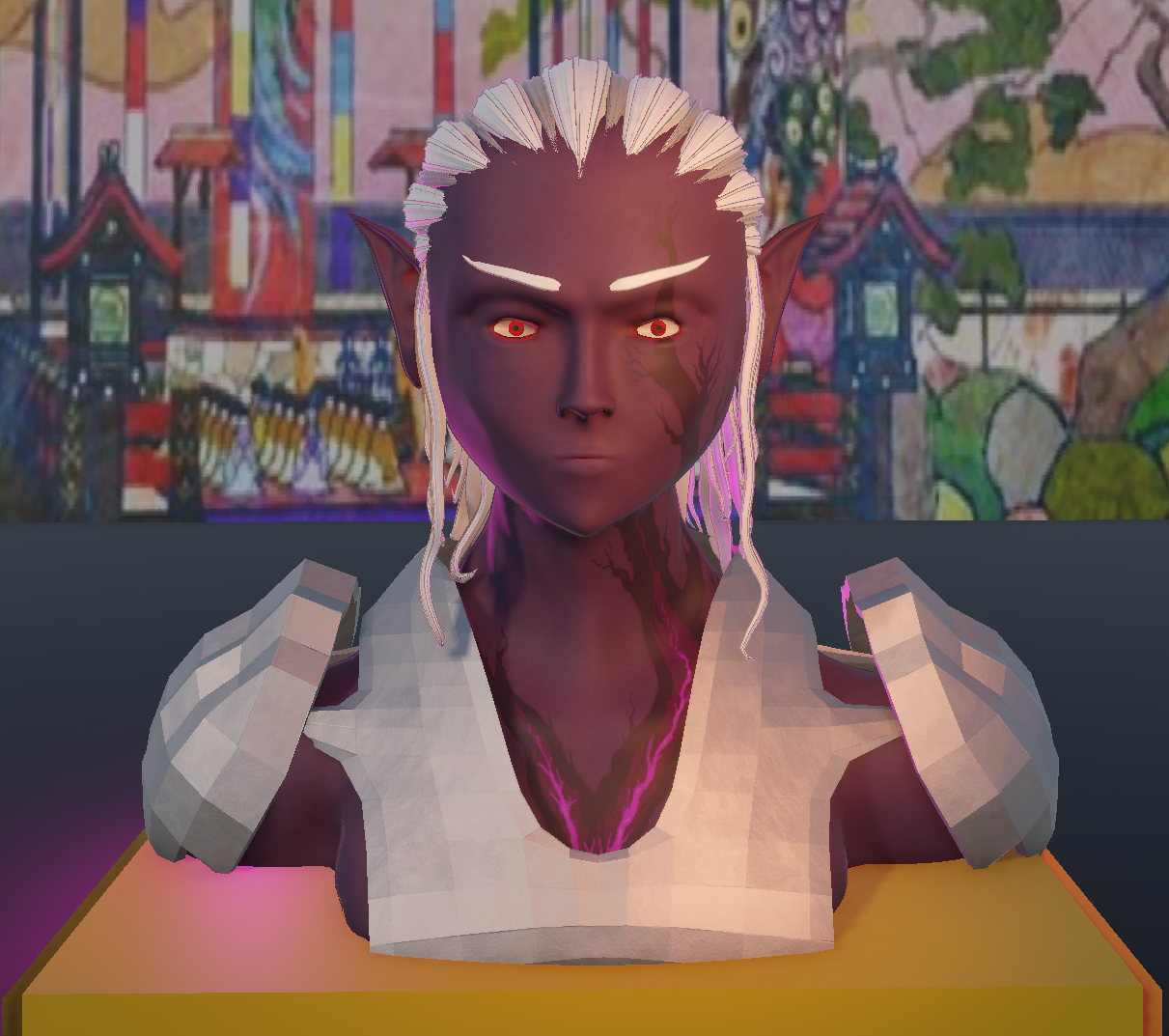 For a uni course, I had to design, sculpt, texture, and import into Unity a character as a game-ready asset, with the addition of 3 facial expressions. My character comes from a D&D campaign made some time ago. This project showcases Ash, a female drow, on an important day during her long life.